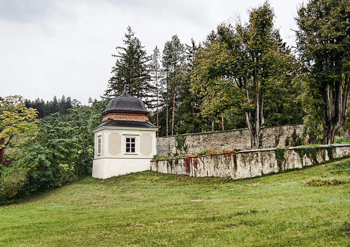Монастырь святого Креста или Хайлигенкройц – неповторимый сплав барокко, рококо и готики в сердце Венского леса. Здесь хранится ценнейшая реликвия – Крест с фрагментами Животворящего Креста Господня. Начало XII века.. Это единственный цистерцианский монастырь в мире, который действует беспрерывно такое долгое время. Визитной карточкой монастыря св.Креста является григорианское песнопение.