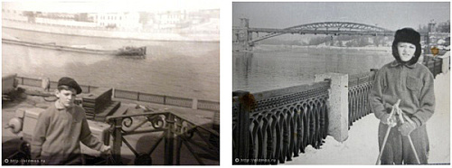 С одной стороны старый Андреевский мост был границей между Нескучным садом и владениями Андреевского монастыря. С другой стороны это путь на тот берег Москвы-реки, таинственное и опасное место, куда я довольно долго не ходил самостоятельно. Страшно было ходить по этому мосту, пешеходная часть которого состояла из деревянных досок с довольно большими расщелинами, через которые была видна Москва-река. К тому же при прохождении поезда по мосту он весьма существенно раскачивался. Однажды приблизительно в 1959 году (мне было 4 года) мы пошли с отцом через Андреевский мост «на ту сторону» (так на жаргоне жителей Андреевского монастыря обозначалась Фрунзенская набережная и ее окрестности). Отец зашел в магазин (скорее всего это была аптека в доме 54), а я остался гонять мячик на тротуаре с каким-то мальчишкой. Через некоторое время мне показалось, что я, заигравшись, не заметил, что отец вышел из аптеки и пошел домой, забыв про меня. Я бросился его догонять, перешел через улицу, прошел по мосту и вернулся в свою обитель. Мама и бабушка очень удивились и испугались, увидев меня одного. Минут через 15 в квартиру весь в мыле и с ужасом в глазах влетел отец, который вышел из аптеки и не обнаружил меня. Так я впервые в жизни в одиночку перешел Андреевский мост